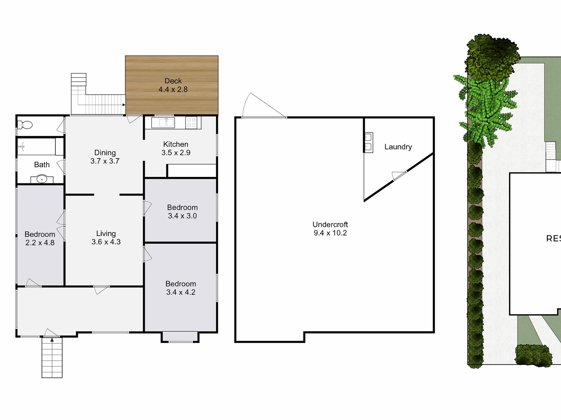 A separate dining room lies off the kitchen, allowing demarcation from the relaxation space. The kitchen is well-sized, with a gas cooktop and loads of storage. This looks over the exterior covered deck - perfect for entertaining friends and family, or enjoying a morning cup of coffee. Underneath the property is a massive undercroft space and laundry room. Plenty of scope for renovation into whatever your family requires.