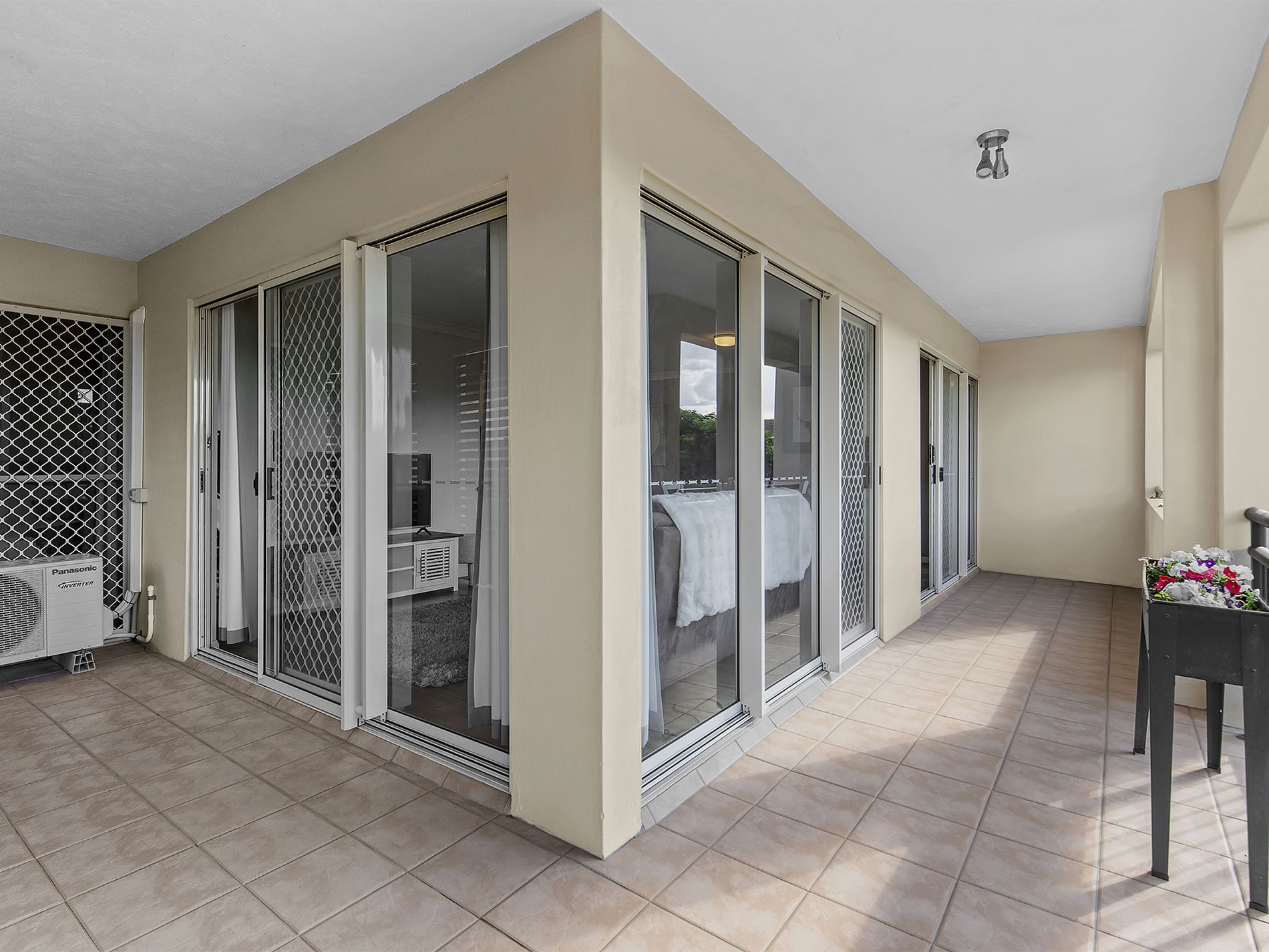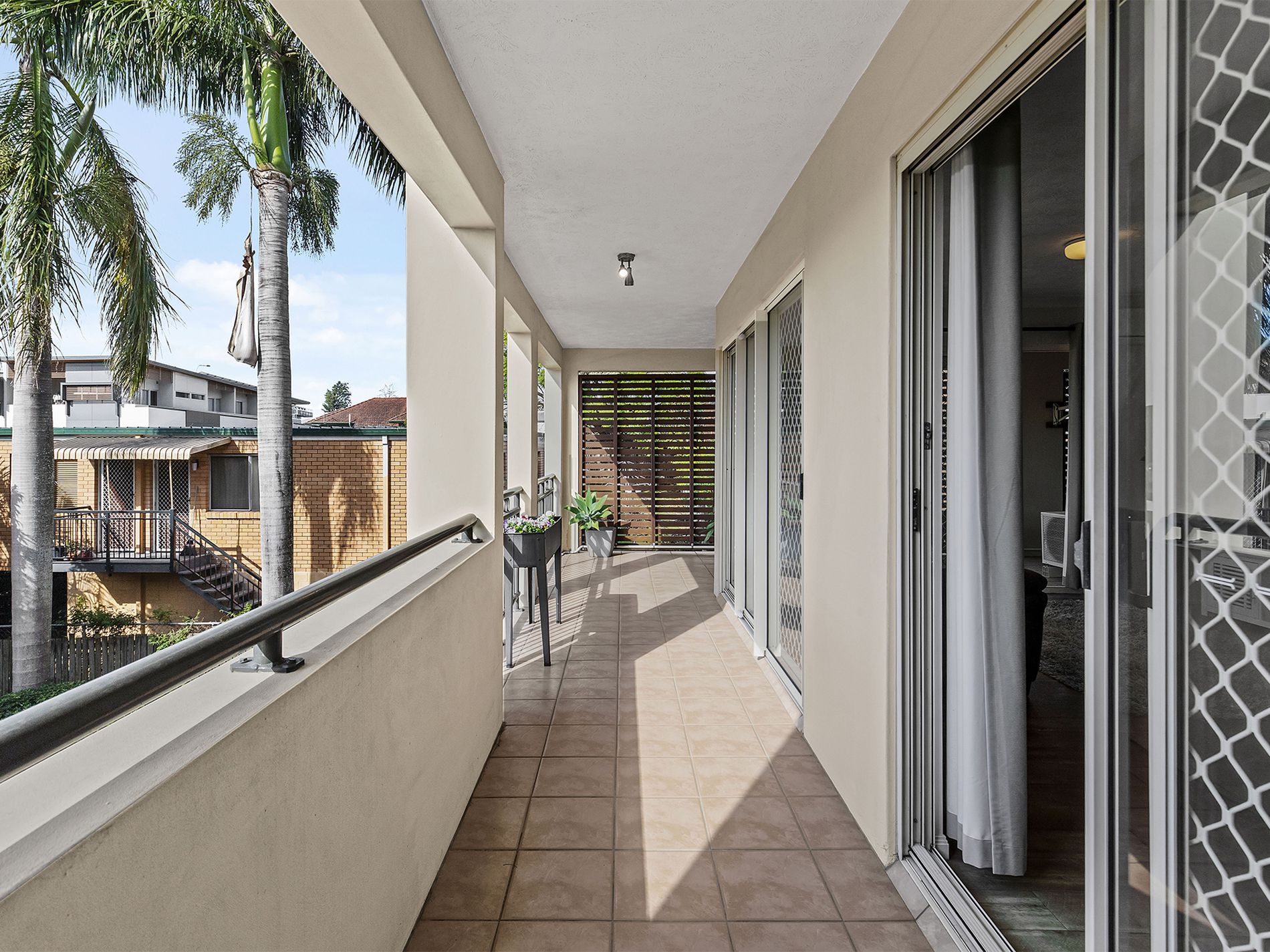 The two bedrooms are well-sized, each with built-in robes and with your master suite inclusive of an ensuite bathroom featuring a cubicle shower and under-vanity storage. An additional family bathroom features a cubicle shower and a corner inset vanity for extra storage. A key feature of this property is the expansive living space, combining inside and outside areas to truly give you the best of the Brisbane lifestyle.