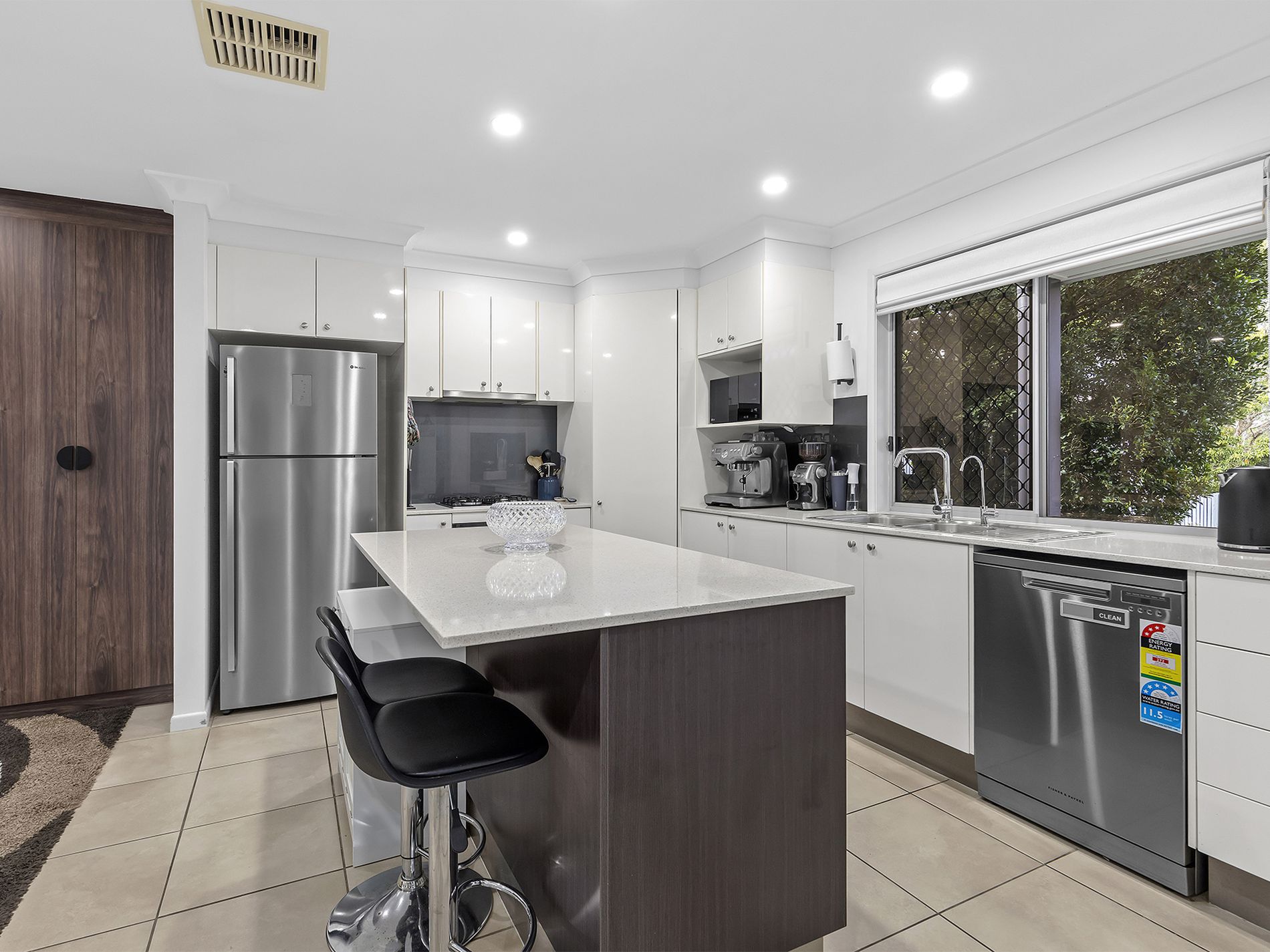 - Large kitchen with gas cooktop, island breakfast bar and plenty of storage space.